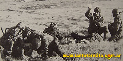 Soldados ingleses heridos en Monte Longdon.